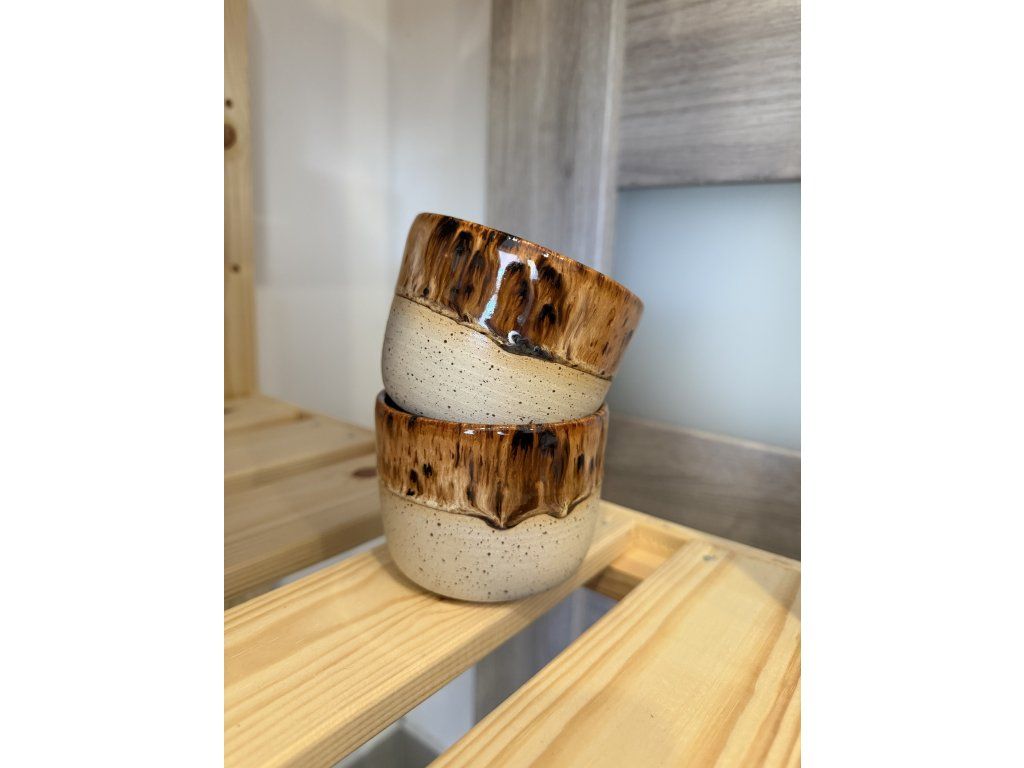 Kalíšek vytočený na hrnčířském kruhu, vypálený za vysokých teplot.