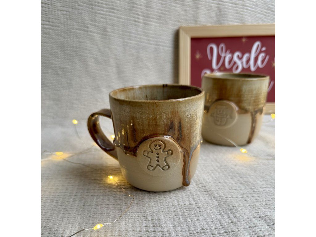 Hrnek s uchem vytočený na hrnčířském kruhu a vypálený za vysokých teplot.