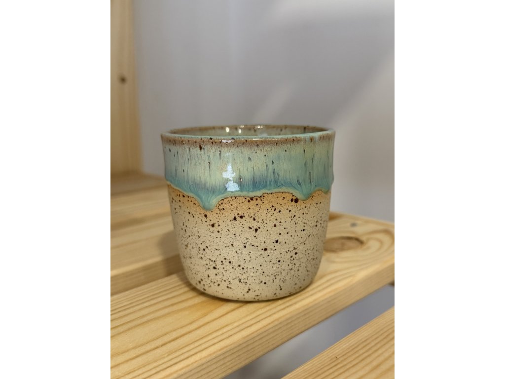 Kalíšek vytočený na hrnčířském kruhu, vypálený za vysokých teplot. Objem cca 210 ml.