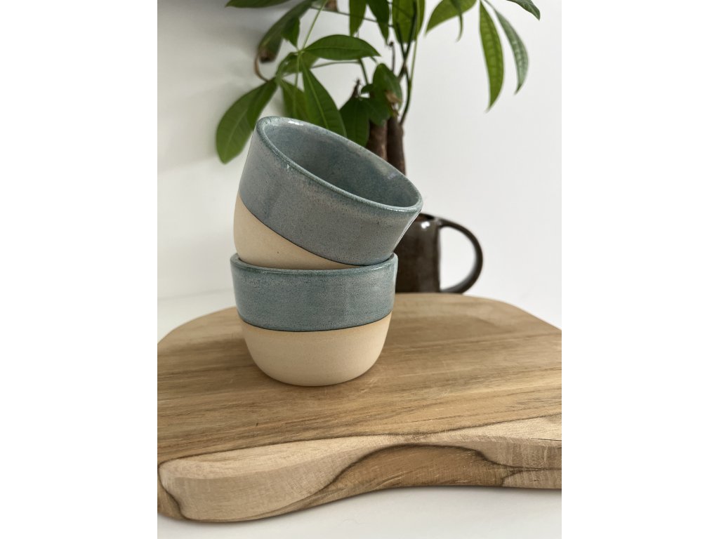 Kalíšek o objemu cca 160 ml, vytočený na hrnčířském kruhu a vypálený za vysokých teplot.