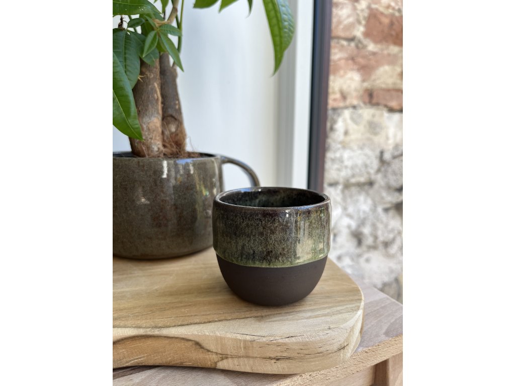 Kalíšek o objemu cca 160 ml, vytočený na hrnčířském kruhu a vypálený za vysokých teplot.