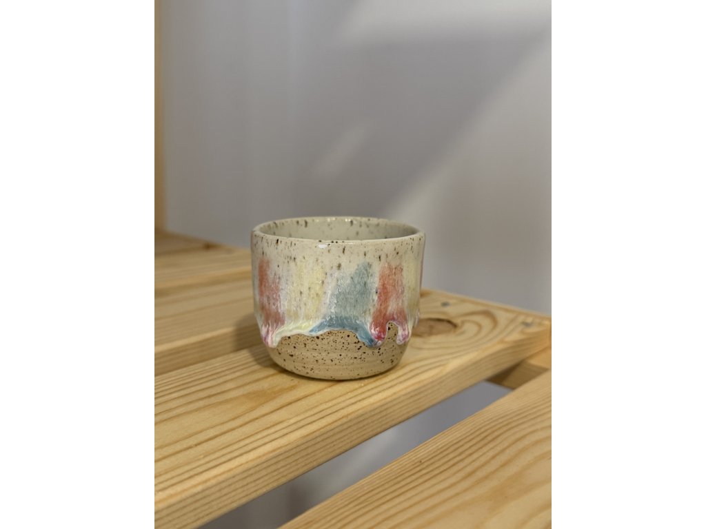 Kalíšek vytočený na hrnčířském kruhu, vypálený za vysokých teplot. Objem cca 100 ml.