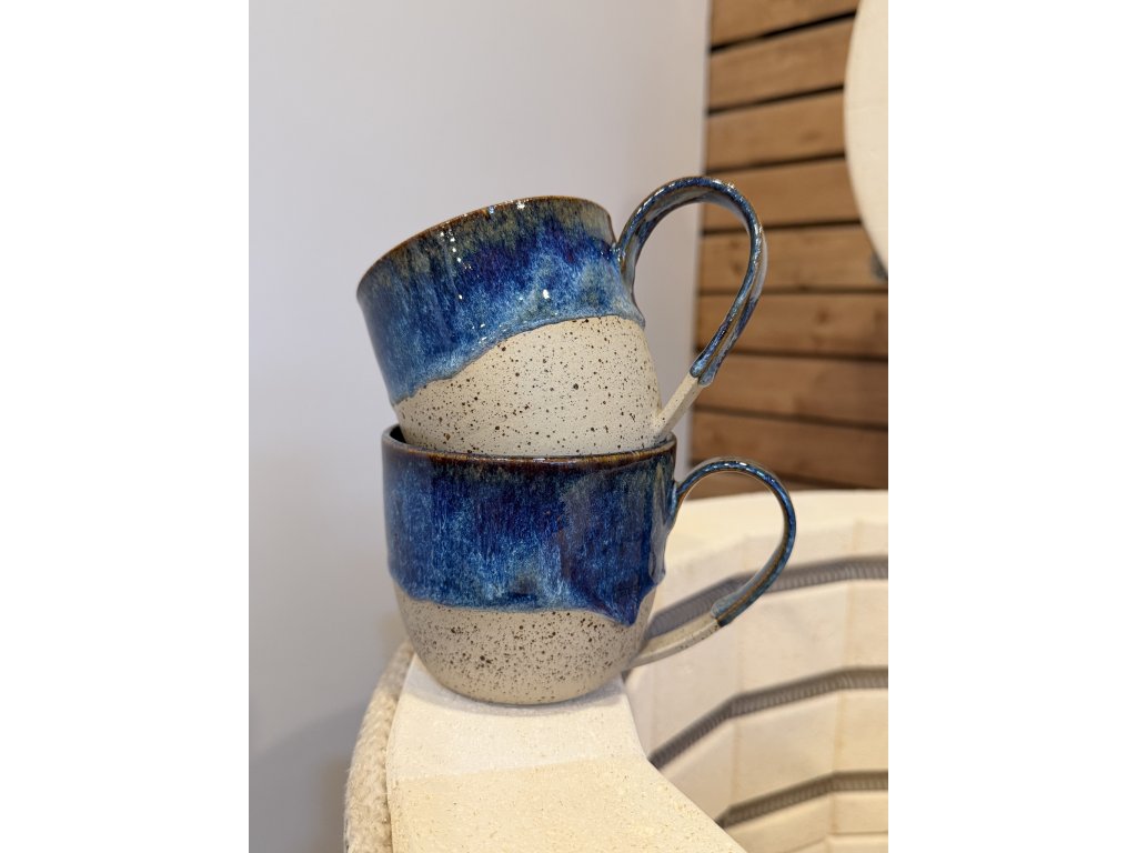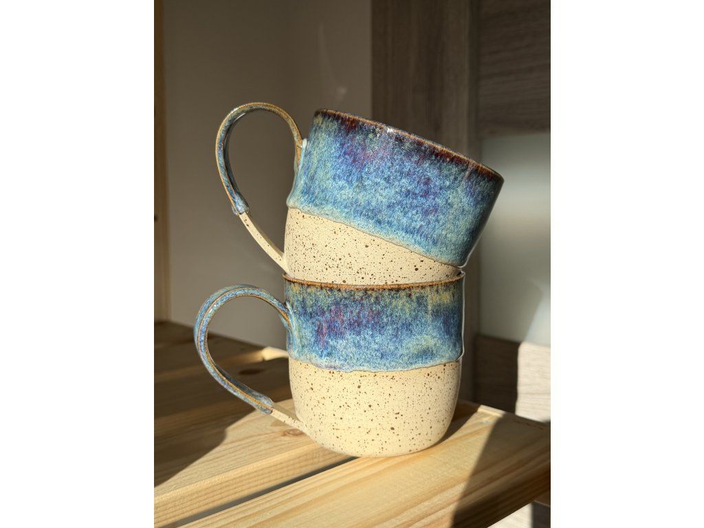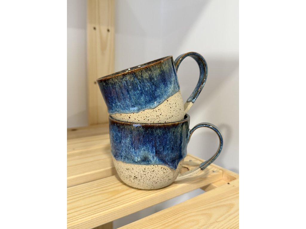 Hrnek s uchem vytočený na hrnčířském kruhu, vypálený za vysokých teplot.